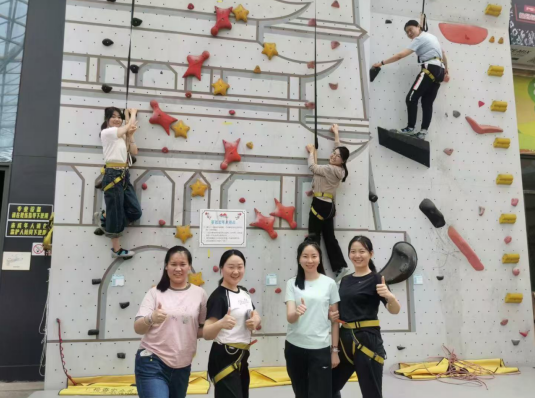 攀巖環(huán)節(jié)將活動(dòng)推向高潮。在專業(yè)教練指導(dǎo)下,團(tuán)員們穿戴護(hù)具,依次挑戰(zhàn)8米高的巖壁。面對(duì)陡峭的賽道,隊(duì)員們以“敢為人先”的勇氣迎難而上,指尖緊扣巖點(diǎn),腳步穩(wěn)扎穩(wěn)打,用汗水詮釋“奮斗是青春最亮麗的底色”。許多人從最初的緊張到逐漸突破自我,最終登頂時(shí)全場(chǎng)歡呼。“巖壁上的每一步都需要專注和勇氣,就像工作中攻克難關(guān)一樣,當(dāng)代青年亦需在挑戰(zhàn)中突破自我!”大家感慨道。