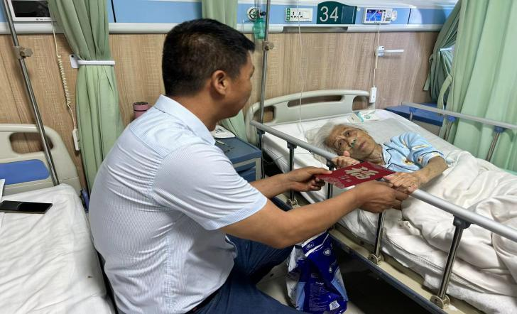 在得知公司一名88歲高齡的老黨員因摔傷住院的情況,周青一行前往臨潼醫(yī)院看望,親切詢問她的身體狀況、耐心傾聽他生活上的問題和困難,感謝她為黨的事業(yè)工作奮斗多年,鼓勵(lì)她樹立戰(zhàn)勝疾病的信心,保持樂觀的心態(tài),盡早康復(fù)。