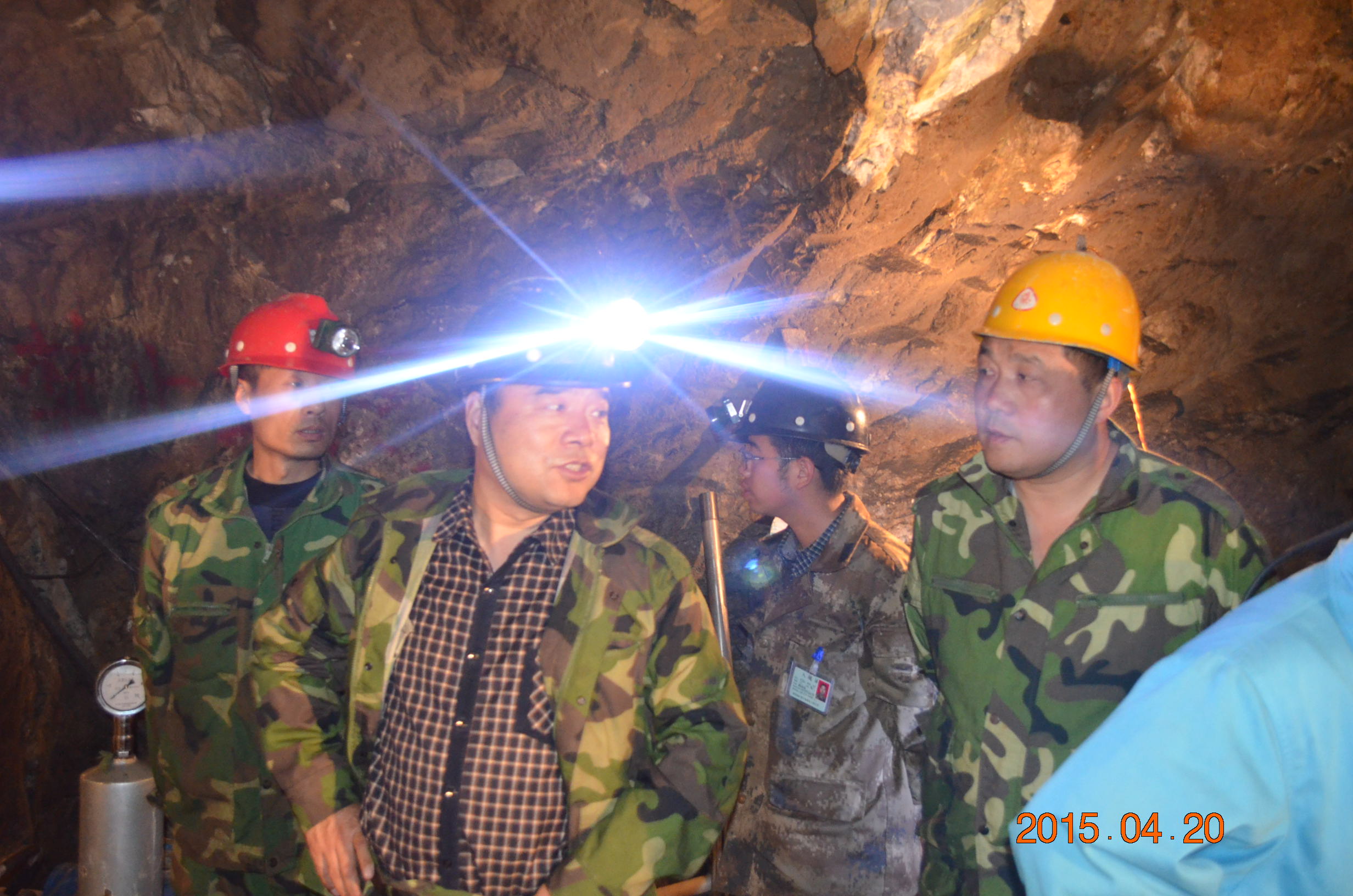 圖為王書記在坑道內(nèi)檢查工作
