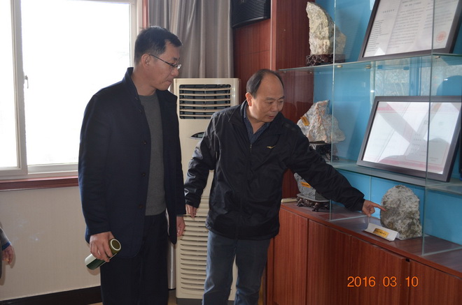 座談會(huì)結(jié)束后,劉總一行來到隊(duì)三樓會(huì)議室,興致勃勃的參觀了我隊(duì)地質(zhì)樣品展臺(tái)。王隊(duì)長就我隊(duì)近年來企業(yè)文化建設(shè)情況向劉總作了介紹。