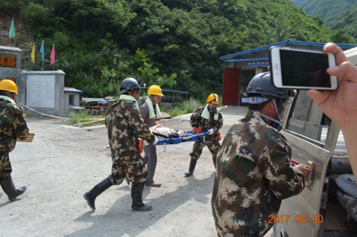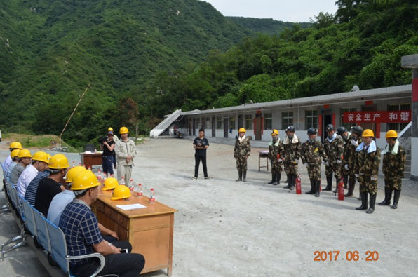 6月20日,盛夏酷暑,我隊在興地公司850坑口組織開展了礦山消防安全應急演練。隊長劉曉東、隊黨委書記王戰(zhàn)社親臨指導。潼關縣安監(jiān)局局長朱曉軍等局領導及有關安全生產專家現場觀摩了演練。潼關縣電視臺對演練進行了實況采訪。