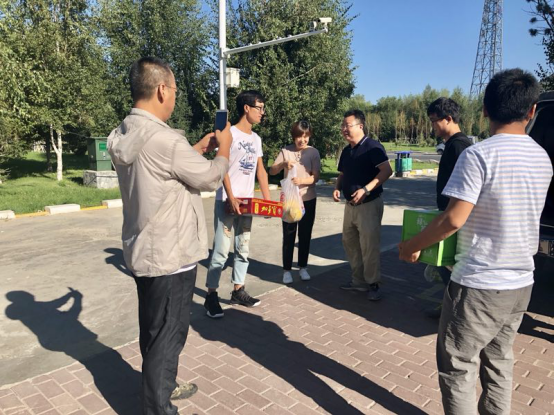 圖為公司黨委書記、執(zhí)行董事劉曉東、副總經(jīng)理夏元鵬慰問新疆哈巴河項目部工作人員