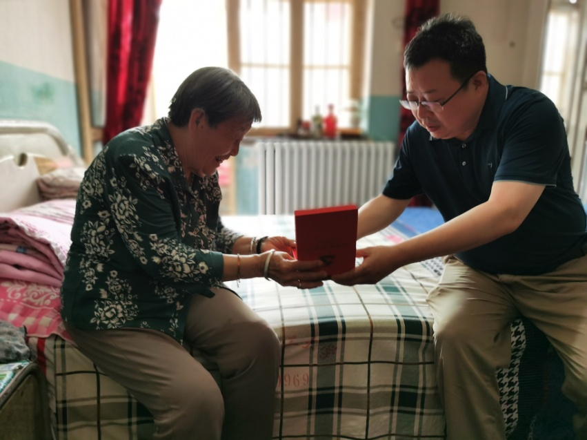 劉曉東一行來(lái)到有50年黨齡的老黨員秦啟萍家中,與老人親切交談,詳細(xì)了解其入黨經(jīng)歷、工作履歷、家庭生活等情況,并為她送去“光榮在黨50年”紀(jì)念章,送上節(jié)日祝福,看到老人積極樂(lè)觀,劉曉東十分欣慰,叮囑她保重身體,安享晚年。