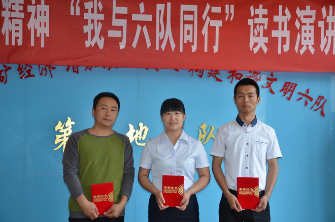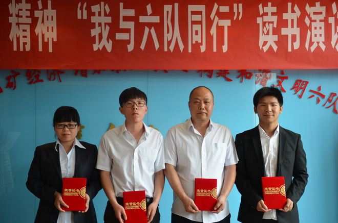 激揚(yáng)的青春最美麗。選手們的激情演講深深地打動了在場的每一位評委和觀眾,贏得了一陣陣熱烈的掌聲。演講結(jié)束,勞動人事部選手馮雪榮獲一等獎,地調(diào)所選手夏含、雷扛分獲二等獎,后勤服務(wù)中心黃鷹、經(jīng)濟(jì)工作部選手許婷婷、工程公司選手劉科科分獲三等獎。我隊隊長王根寶為獲獎選手頒發(fā)了榮譽(yù)證書。黨委書記王戰(zhàn)社為獲得2015年度的優(yōu)秀團(tuán)員、團(tuán)干頒發(fā)了榮譽(yù)證書。